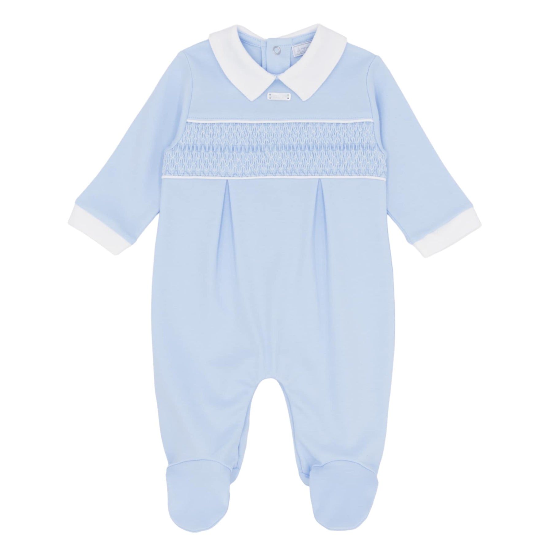Amore Boys Blue & White Smocked Classic All In One Babygrow Sleepsuit - AM0049