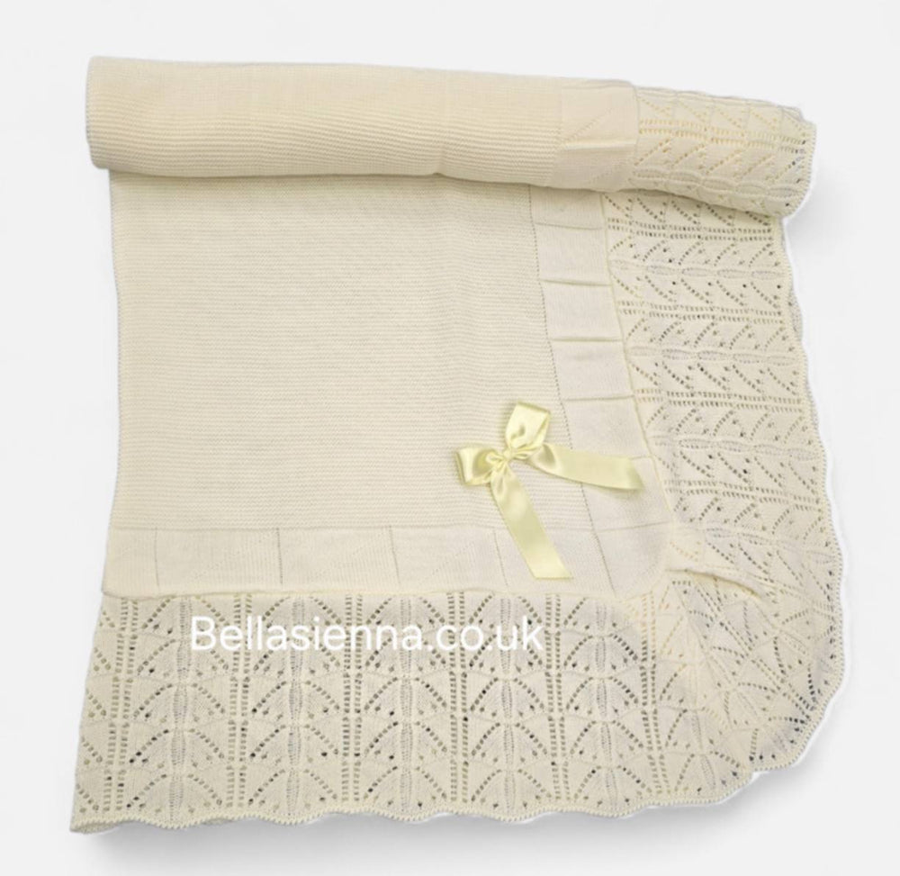 Bella Sienna Lemon Knitted Luxury Baby Shawl With Bow - 3752