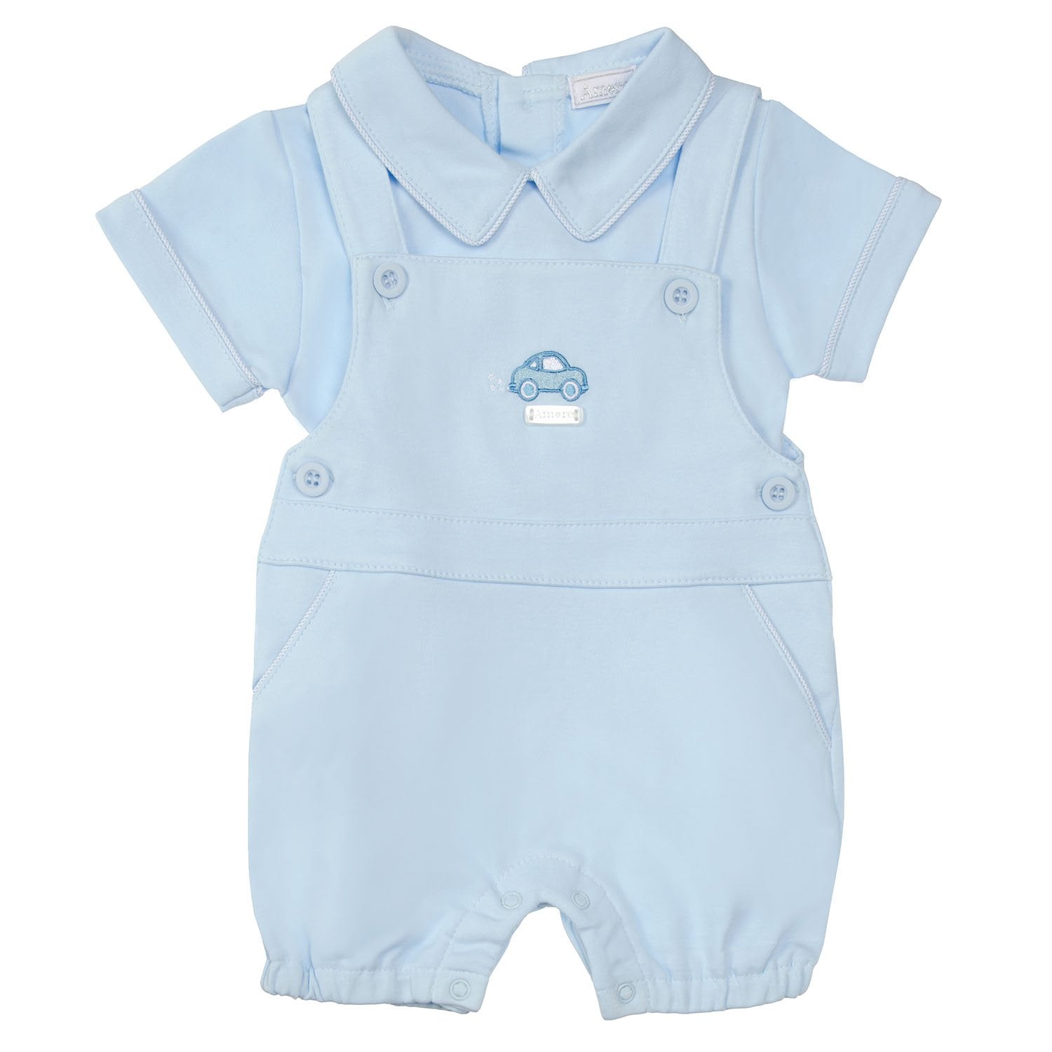 Boys Blue 100% Cotton Two Piece Dungaree & Top Set - 8015A