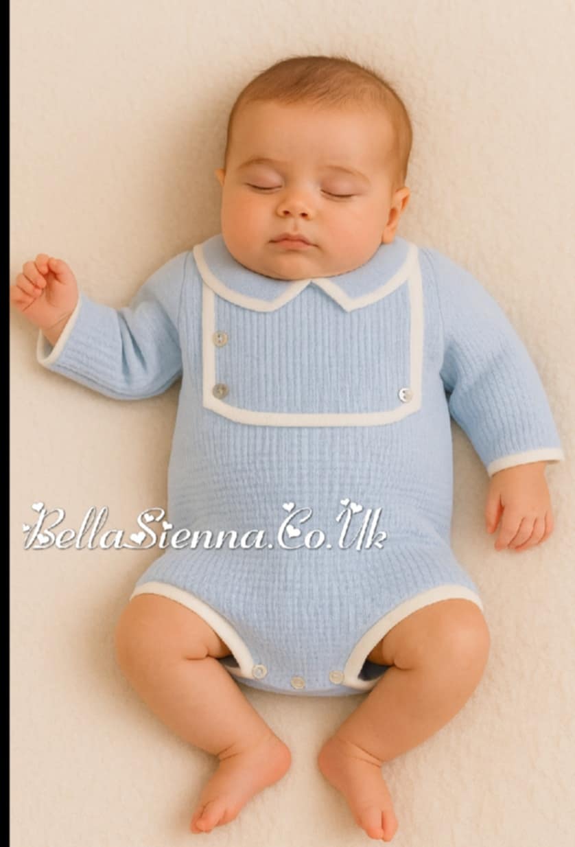 Boys Blue & White Knitted Romper - P7519