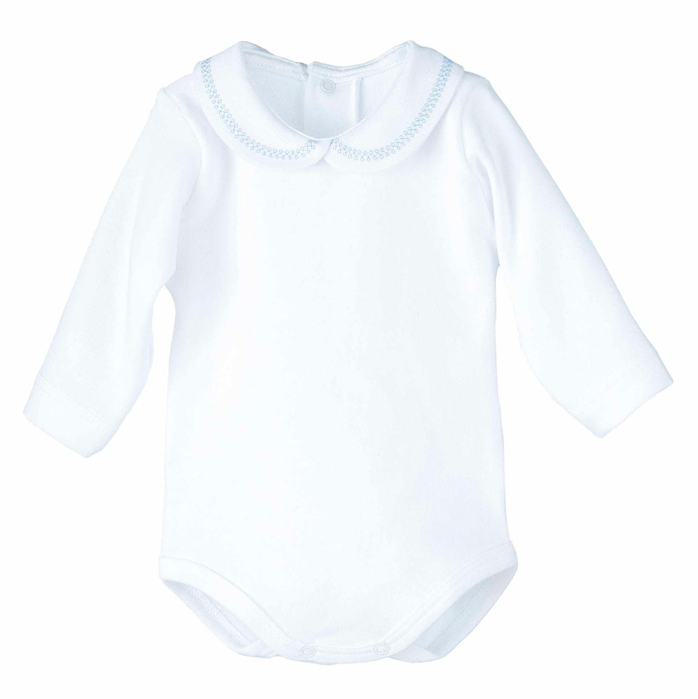 Calamaro White Long Sleeved Bodysuit With Collar Trimmed With Baby Blue - 19059