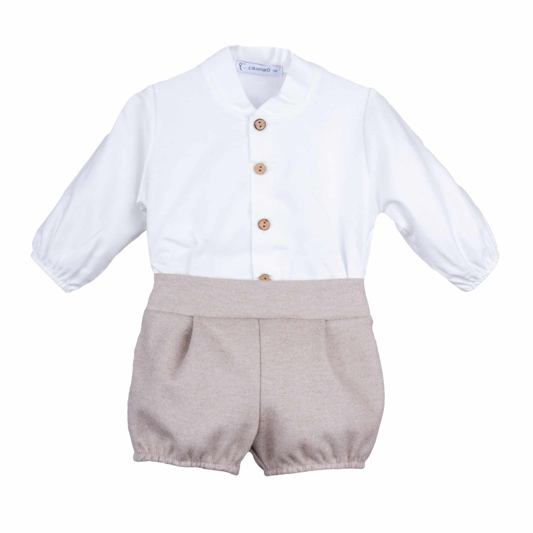 Calamaro Excellent Boys Ivory Shirt & Beige Smart Shorts Set - 11076