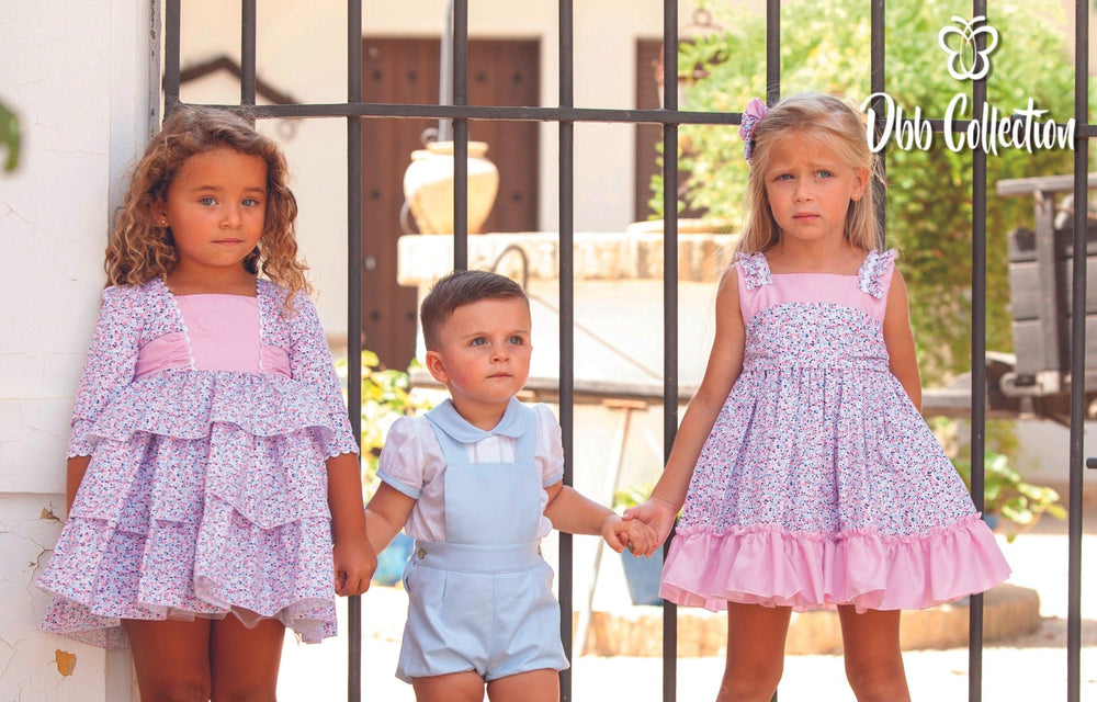 The Dbb Collection Boys Baby Blue & White Set – 9705 is perfect for any occasion. The set includes a white shirt with a baby blue peter pan collar, and dungarees with button fastening and elasticated legs. It's the perfect special outfit for your little one.