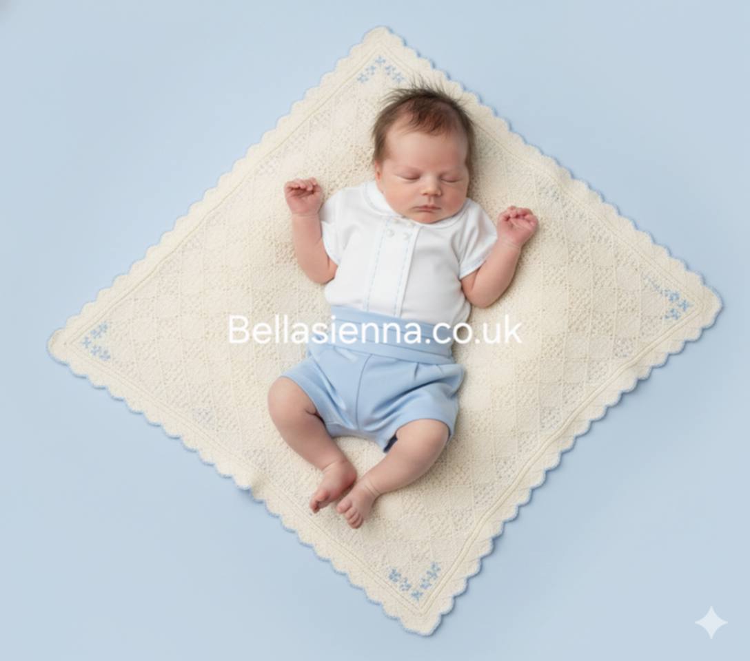 Mayoral is the perfect outfit for your little one - featuring a white and blue trimmed shirt. co - ordinating blue shorts. The lightweight and breathable fabric will keep your baby cool in the summer months. The outfit is designed with comfort in mind, with quality materials that will last.