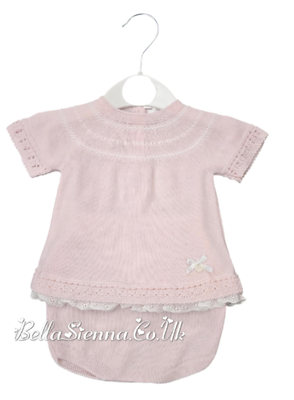 Pale Pink & White Knitted Two Piece Set With Bow - B0556